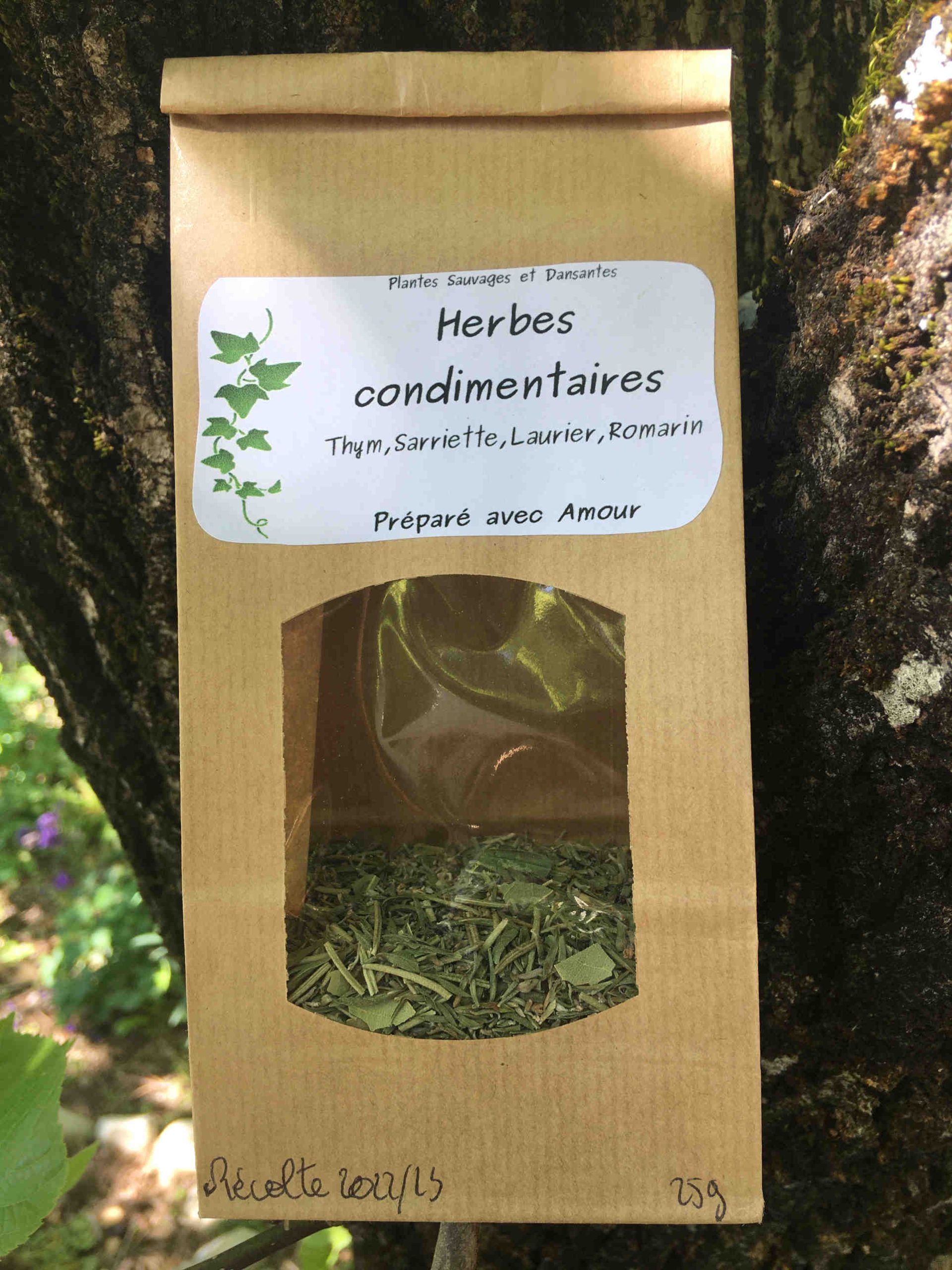 Les plantes utilisées pour cette préparation sont cultivées dans le jardin ou ramassées en sauvage, à la main. Elles sont sans produits chimiques. Le séchage et l’emballage est fait par moi-même. Avec Soin et Joie! 100% local, naturel, artisanal. Fait en Drôme.
